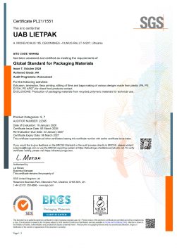 Zarząd firmy poświęca dużo uwagi poprawie i utrzymaniu wysokiej jakości produkcji. Firma wdrożyła system zarządzania jakością ISO 9001:2008 oraz uzyskała certyfikat zarządzania środowiskowego ISO 14001:2005. UAB Lietpak otrzymał również certyfikat potwierdzający spełnianie standardów BRCGS, który uznawany jest przez wszystkie największe europejskie sieci handlowe. Certyfikat ten przyznawany jest firmom produkującym i dostarczającym opakowania do żywności.
